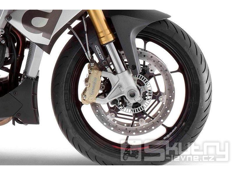 Tak jako všechny modely i Tuono je standardně vybaveno pancéřovými brzdovými hadicemi.