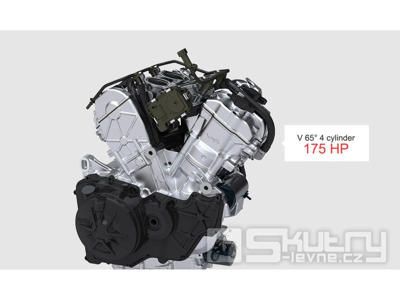 - Motor Aprilia V4 65° 4-taktní, příčně uložený, kapalinou chlazený, DOHC – 4 ventily na válec, kombinovaný rozvod řetěz + ozubená kola, EURO 3