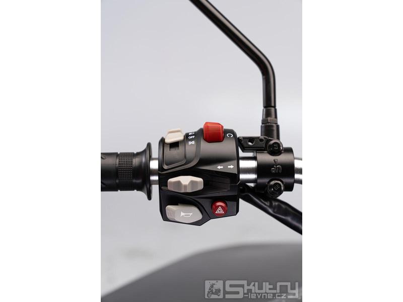 Vpravo je umístěn volič výkonové mapy, díky kterému si jezdec snadno přizpůsobí odezvu motoru podle terénu nebo stylu jízdy.