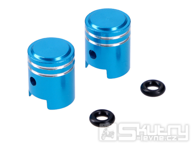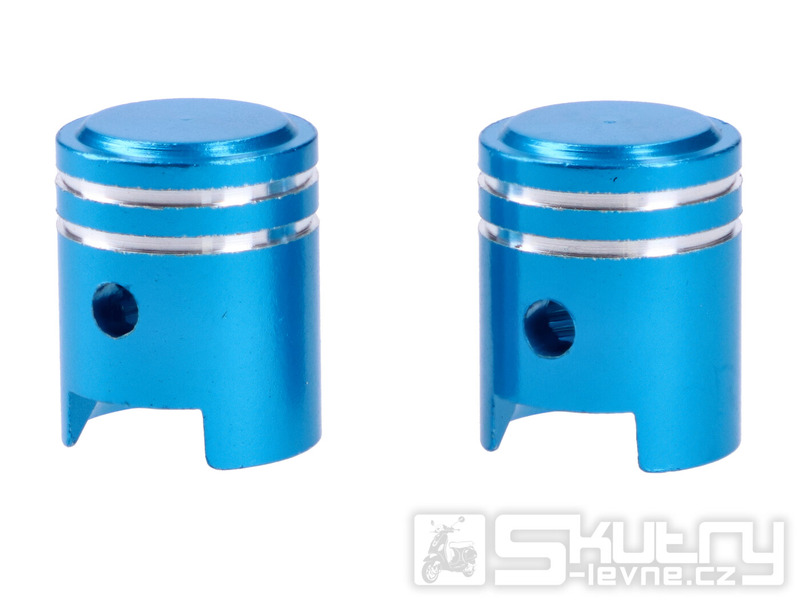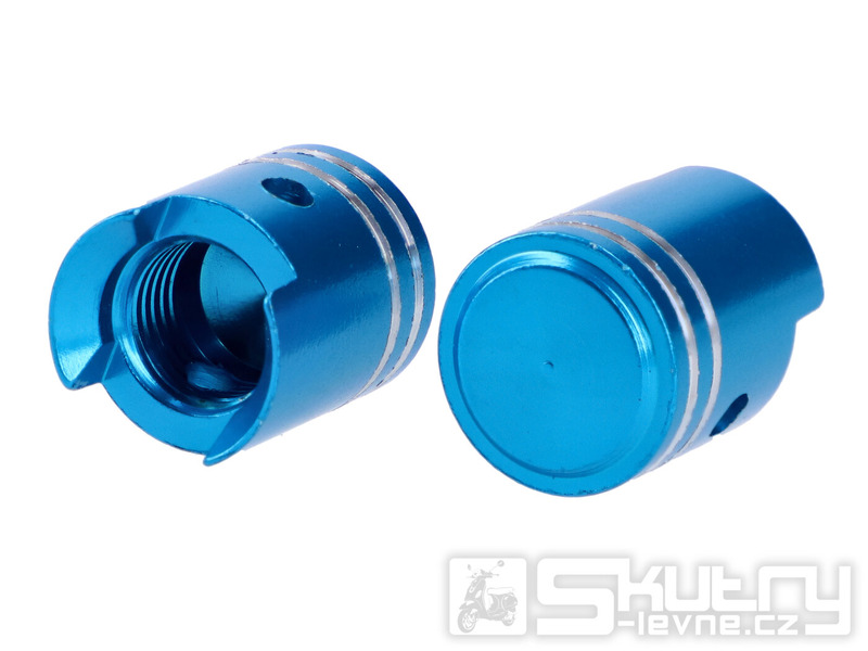 Čepičky ventilků hliníkové, modré, ve tvaru pístu
