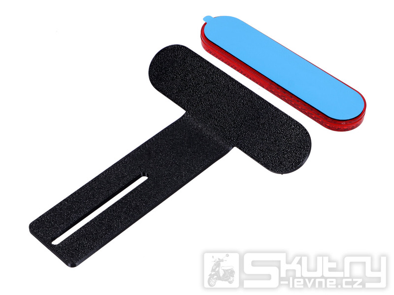 Tahle černý plastový držák je jednoduché, ale důležité řešení pro doplnění povinného zadního odrazky na malých motocyklech a mopedech. Konstrukce je univerzální, takže ji lze použít na široké spektrum strojů, a zároveň perfektně sedí na Beta RR, kde zadní odrazka často z výroby chybí.