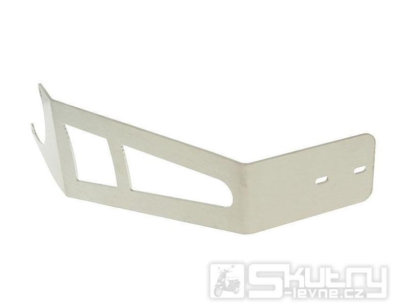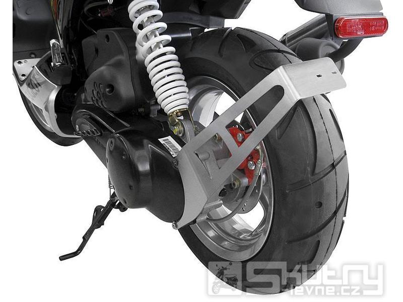 Pro docílení dokonalého designu Vašeho skútru byl vytvořen tento nerez ocelový držák s umístěním SPZ za zadní kolo v šedém provedení pro montáž na kryt variátoru motoru Peugeot vertikál.