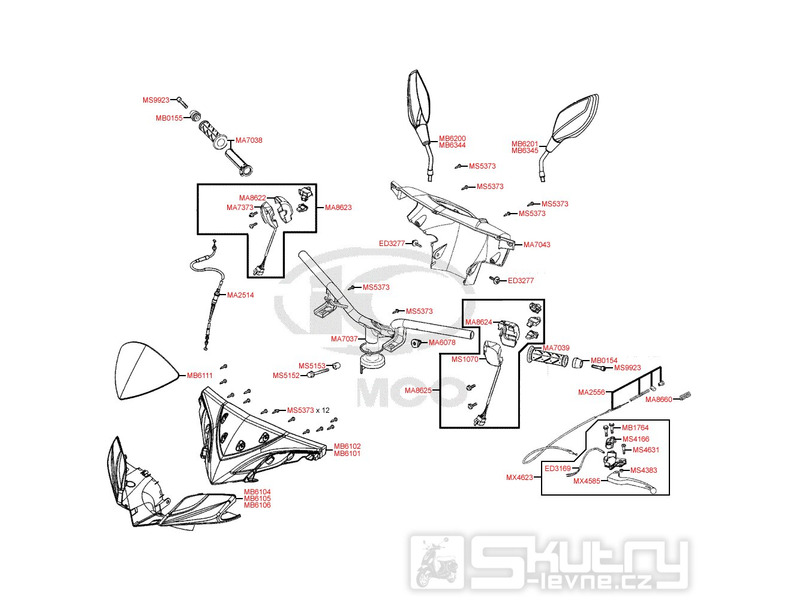 F03 Řídítka, zrcátka, bowdeny a kryt řídítek pro Kymco Super 8 125 [LC2U82000] (KL25CA) KC125T-B