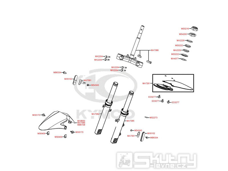 F06 Vidlice, vidlicový můstek, ložisko, přední blatník pro Kymco Super 8 125 [LC2U82000] (KL25CA) KC125T-B