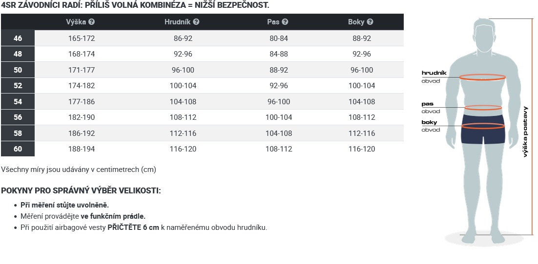 Součástí kombinézy není airbagový systém – ale konstrukce je plně připravena na jeho instalaci