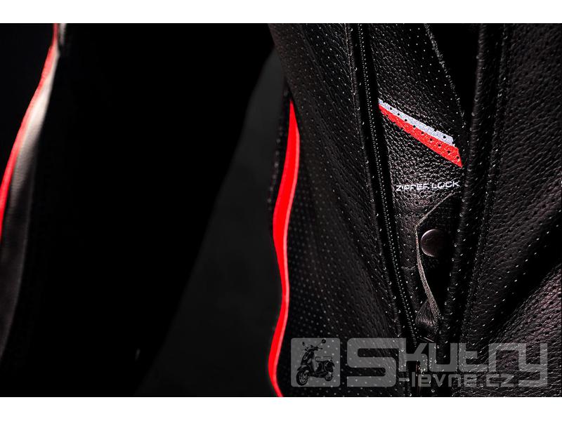 Kombinéza je vyrobena z prémiové 1,2 mm hovězí kůže a doplněna o kompletní perforaci předních dílů i lokální perforace na pažích, bocích a stehnech. Díky 3D podšívce a flexibilním koženým panelům se přizpůsobí každému pohybu. Dutý aerodynamický hrb umožňuje vložení camelbagu – ideální pro dlouhé jízdy.