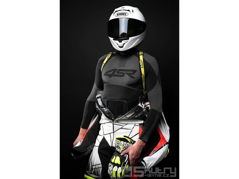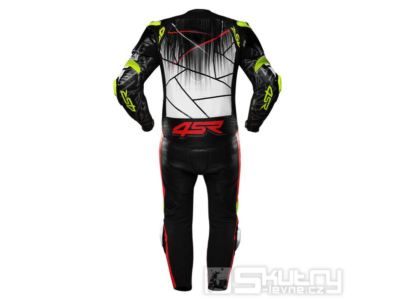 4SR nabízí kompletní sadu závodních chráničů včetně hrudního a páteřového v ceně. Aramidová streč je bezešvá, což výrazně zvyšuje komfort i odolnost. Patentovaný 4× šitý šev je použit na místech nejvíce náchylných k prodření. Dvojité vrstvy kůže na klíčových partiích zvyšují bezpečnost. Kombinéza byla testována certifikačním střediskem Eurofins Textile Testing Spain a získala nejvyšší bezpečnostní klasifikaci AAA.