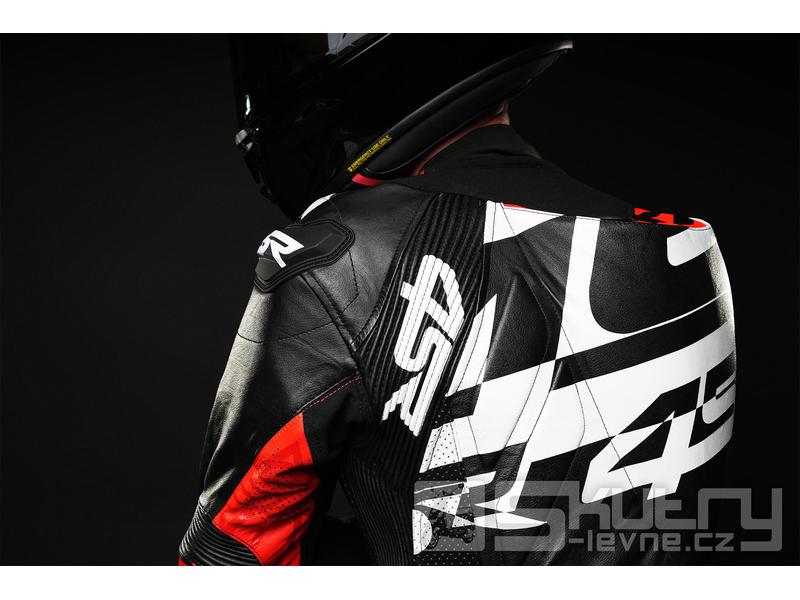 Kombinéza je vyrobena z 0,9mm klokaní kůže v černo‑bílo‑červeném provedení. Klokaní kůže je lehčí a pevnější než hovězí, což přispívá k celkové hmotnosti pouhých 3,55 kg bez chráničů. S kompletní sadou chráničů a slidery váží 5,5 kg (velikost 48). Na kritických místech jsou použity trojité švy a patentovaný 4× šitý bezpečnostní šev 4SR, který výrazně zvyšuje odolnost při pádu. Kombinéza splňuje normu CE – EN17092‑2 v nejvyšší třídě AAA.