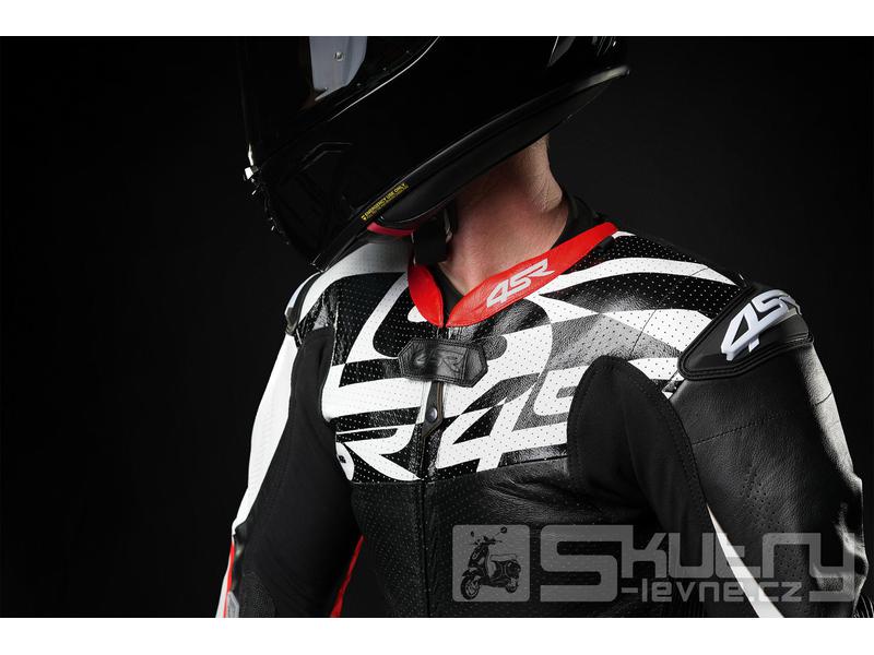Kombinéza je vyrobena z 0,9mm klokaní kůže v černo‑bílo‑červeném provedení. Klokaní kůže je lehčí a pevnější než hovězí, což přispívá k celkové hmotnosti pouhých 3,55 kg bez chráničů. S kompletní sadou chráničů a slidery váží 5,5 kg (velikost 48). Na kritických místech jsou použity trojité švy a patentovaný 4× šitý bezpečnostní šev 4SR, který výrazně zvyšuje odolnost při pádu. Kombinéza splňuje normu CE – EN17092‑2 v nejvyšší třídě AAA.
