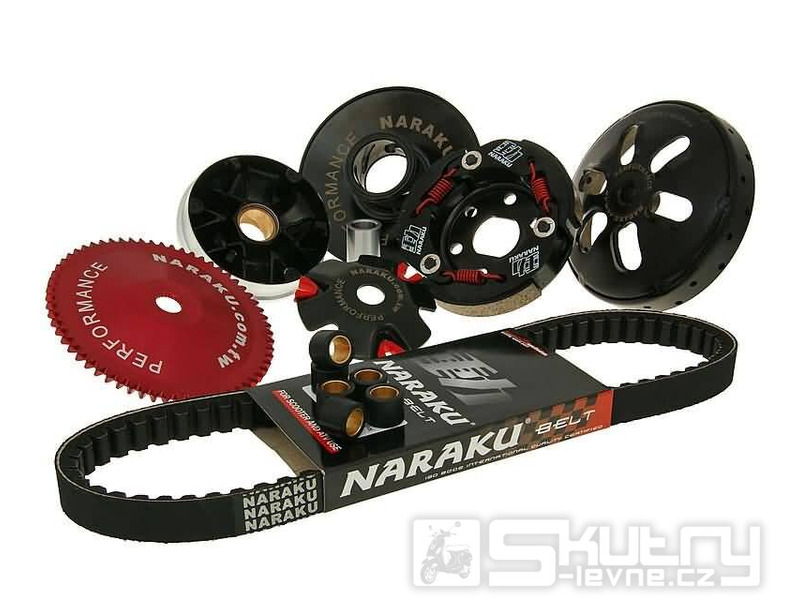 Kompletní sada variátoru složená z dílů Naraku. Všechny díly jsou vzájemně pečlivě sladěny. Vzhledem k tomu, že čínské skútry někdy nejsou vybaveny nejkvalitnějšími díly z výroby, jedná se o nejjednodušší způsob kompletní opravy variátoru bez odborných znalostí a ladění jednotlivých komponentů. Všechny restrikce v této sadě jsou odstraněny. Sada obsahuje variátor, čep variátoru, válečky variátoru, řemen variátoru, polořemenici, zadní řemenici, spojku a spojkový zvon. Tato sada je vhodná pro všechny čtyřtaktní skútry s motorem 139QMB a řemenem variátoru o délce 669 mm. Tato sada je určená především pro seriové skútry bez úprav pro každodenní používání. Pokud již byly provedeny změny na výfuku nebo válci, je třeba znovu seřídit variátor a případně namontovat tvrdší kontrastní pružinu.