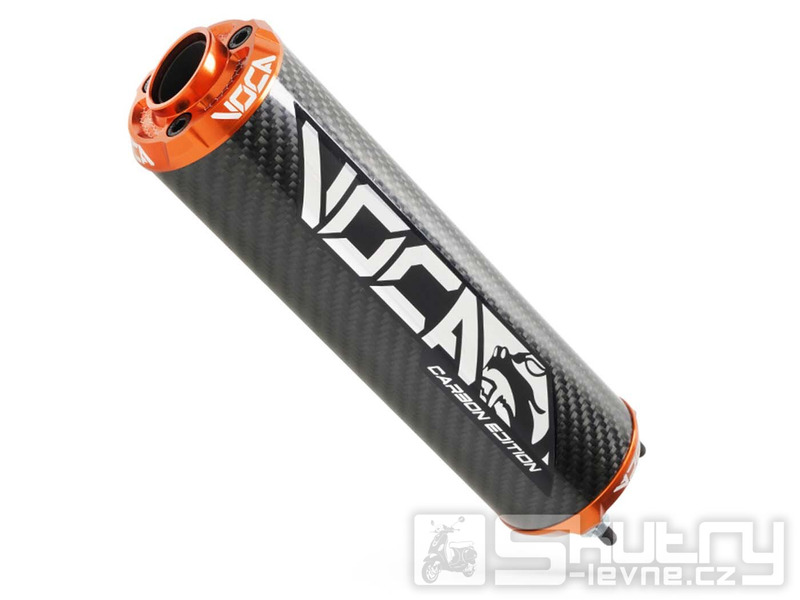 Koncovka / tlumič výfuku VOCA je vybaven CNC frézovanou koncovkou z oranžově eloxovaného hliníku a tělem z karbonu, což mu dodává nejen atraktivní vzhled, ale i vysokou odolnost vůči teplotám. Díky kompaktní konstrukci a zesílenému vnitřnímu prostoru je ideální pro sportovní využití.