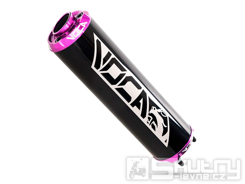 VOCA tlumič výfuku je vybaven CNC obráběnou hliníkovou koncovkou a eloxovaným hliníkovým tělem v černé barvě s koncovkou ve fialové barvě. Díky kompaktní délce pouhých 220 mm a zesílenému vnitřnímu prostoru nabízí vysokou odolnost i při extrémních teplotách. Koncovka je upevněna třemi černými nerezovými šrouby, což zajišťuje pevnost a dlouhou životnost.