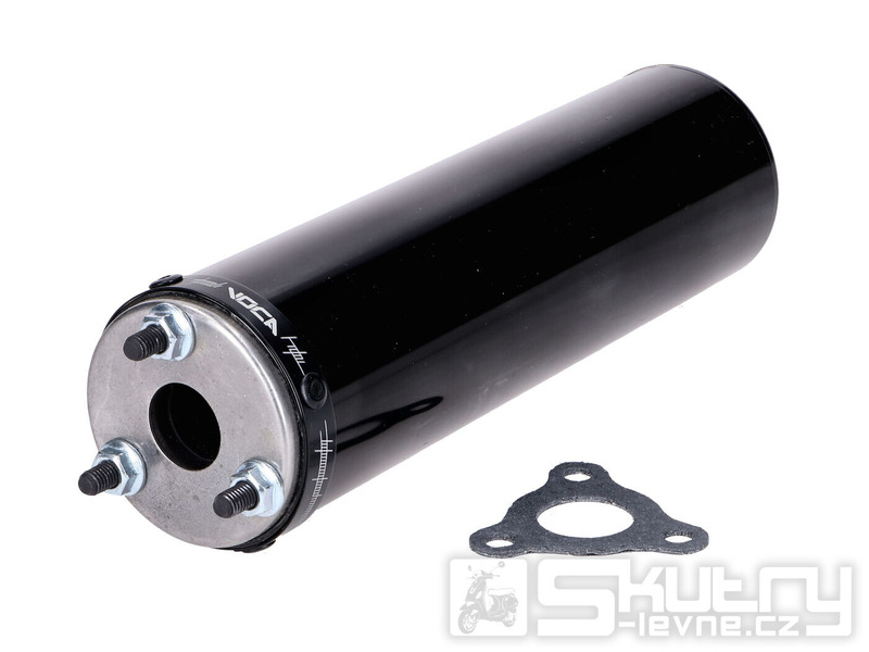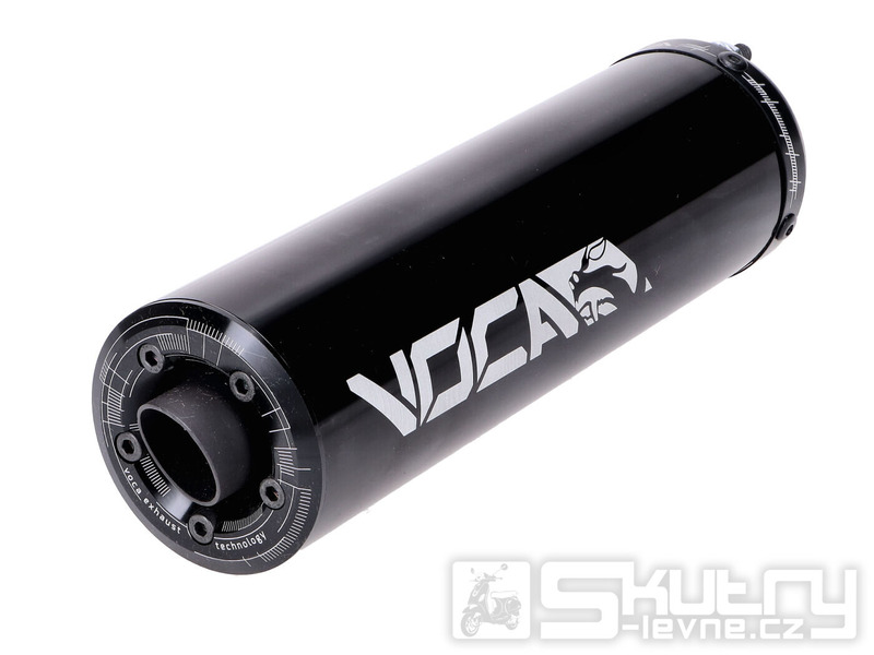 Černá koncovka výfuku VOCA Racing se zkrácenou délkou na 20 cm je určena pro motocykly s řazením 50–90 ccm.