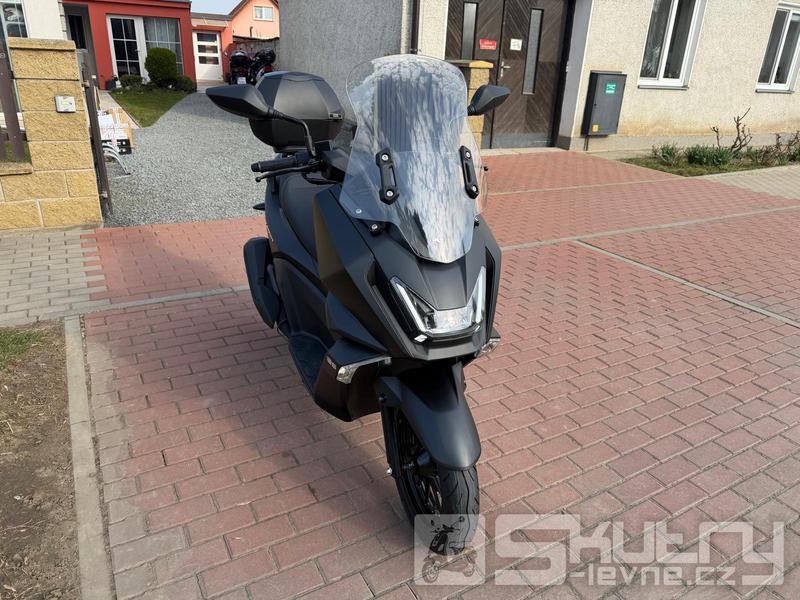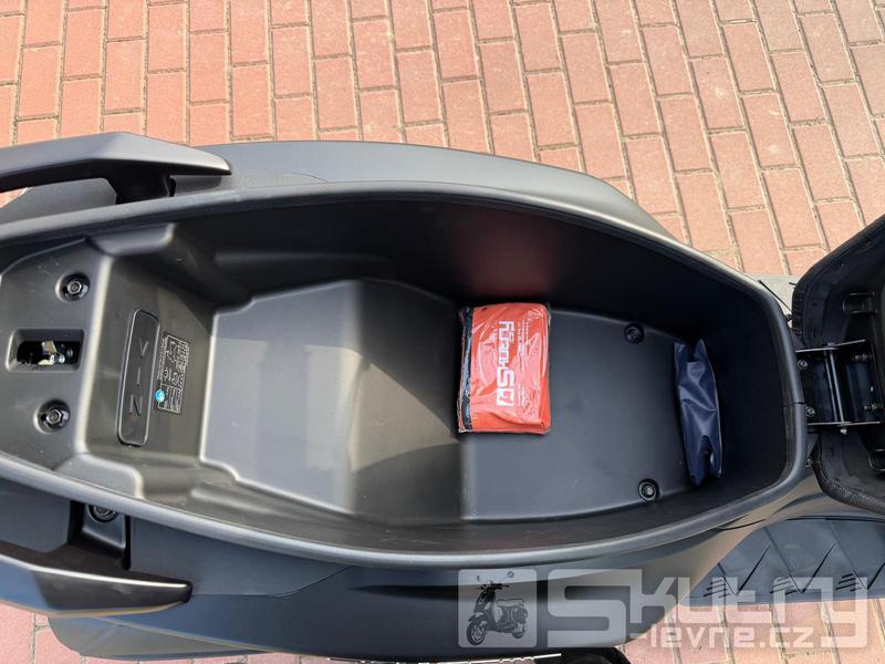 Systém ABS od Bosche a automaticky aktivovaná LED světla přinášejí velkou porci pasivní bezpečnosti, zatímco vysoký štítek zlepšuje jízdní komfort. Podsedlový prostor pojme jednu integrální přilbu a sériově montovaný topcase tuto kapacitu ještě dále rozšiřuje. Nabíjecí USB port (typ A a C) se stará za jízdy o baterii smartphonu, zatímco LCD přístrojovka přináší přehledně veškeré potřebné informace o jízdě.