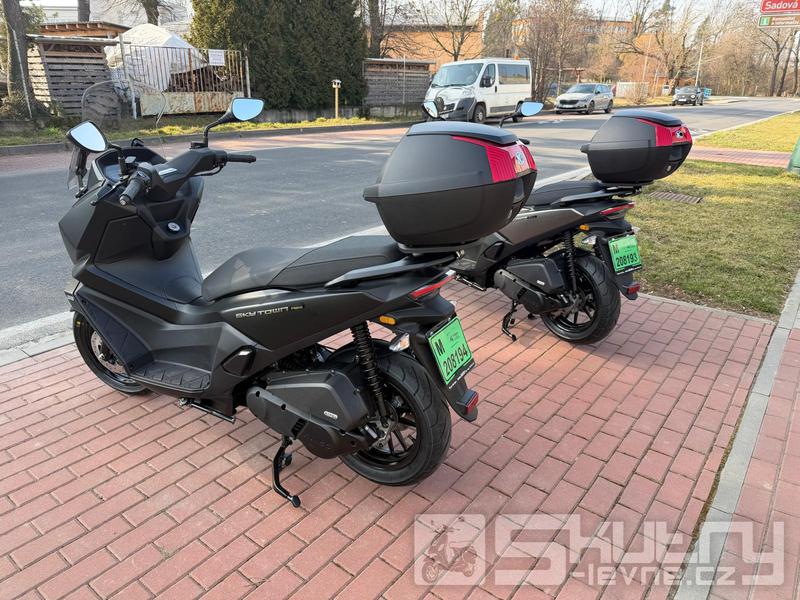 SKY TOWN 125i ABS je skvělou volbou pro všechny, kteří hledají agilní, moderní a úsporný skútr pro denní dojíždění. Díky nejmodernější normě Euro5+ a nízké spotřebě jen 2,5 l na 100 kilometrůje tento skútr velmi úsporný a přispívá k udržitelnosti v dopravě.