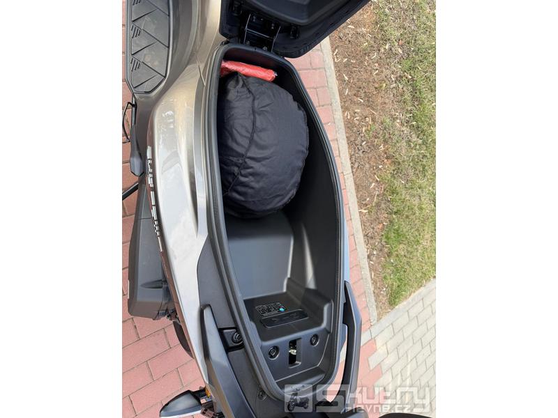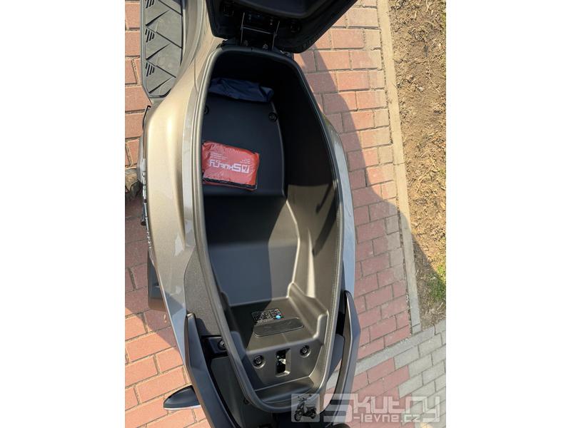 Systém ABS od Bosche a automaticky aktivovaná LED světla přinášejí velkou porci pasivní bezpečnosti, zatímco vysoký štítek zlepšuje jízdní komfort. Podsedlový prostor pojme jednu integrální přilbu a sériově montovaný topcase tuto kapacitu ještě dále rozšiřuje. Nabíjecí USB port (typ A a C) se stará za jízdy o baterii smartphonu, zatímco LCD přístrojovka přináší přehledně veškeré potřebné informace o jízdě.