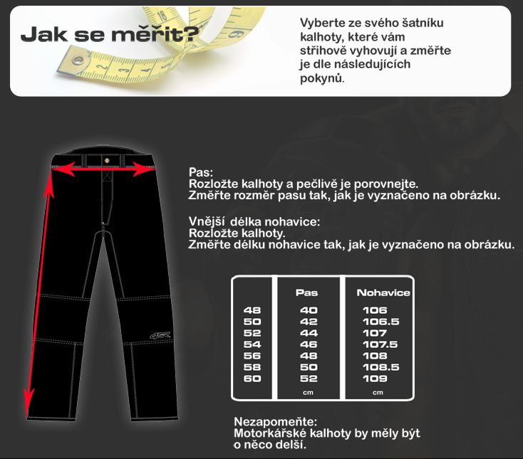 - kevlarová textilie na kolenou, bocích a v sedací části