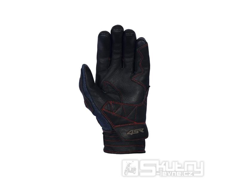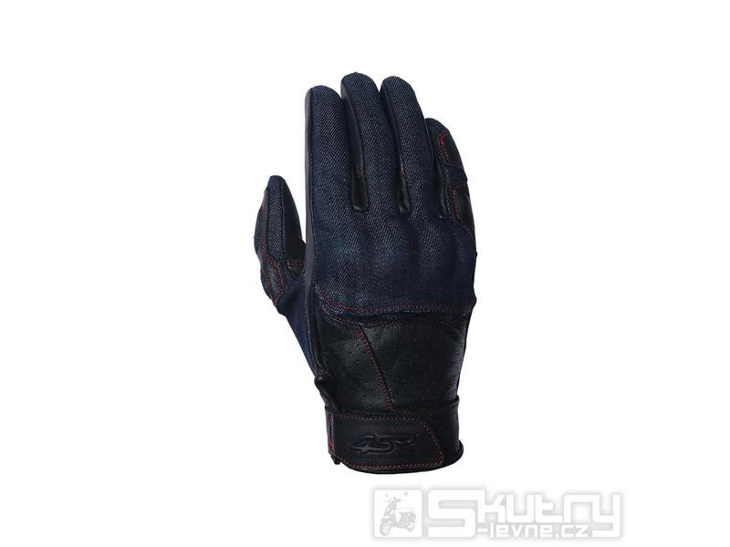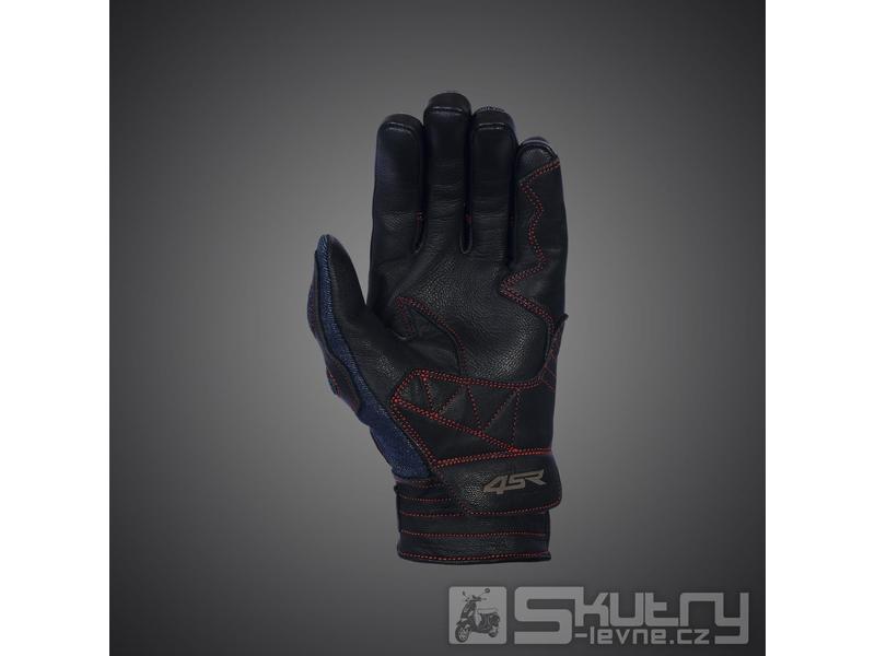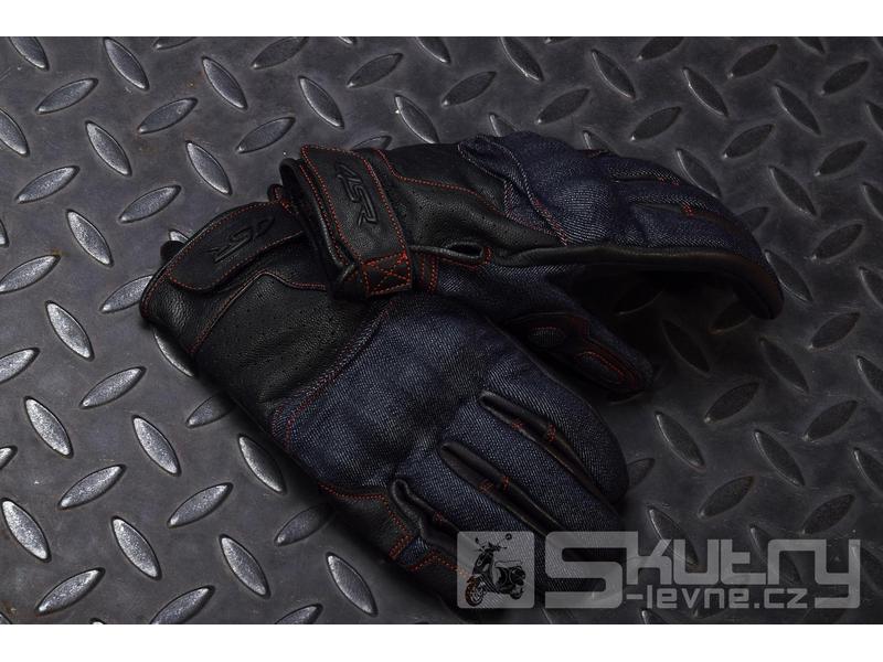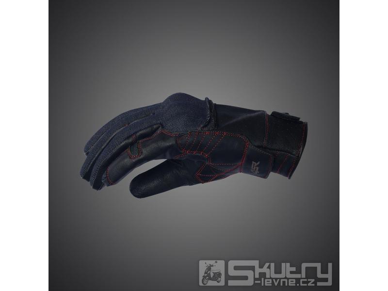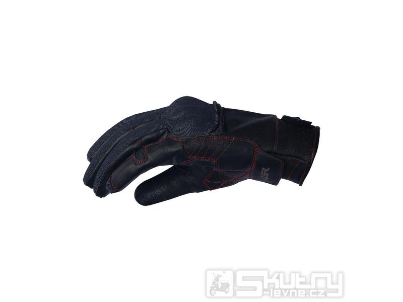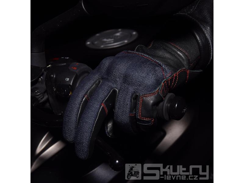 - krátké rukavice na motorku vyrobené z jemné kozinky a denimu