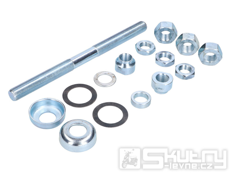 Kompletní sada osy předního kola určená pro Puch Maxi s drátovými koly. Součástí balení je samotná osa, klasické matice i konusové matice pro správné předpětí ložisek. Díky přesným rozměrům je montáž bezproblémová a plně odpovídá originálnímu provedení.