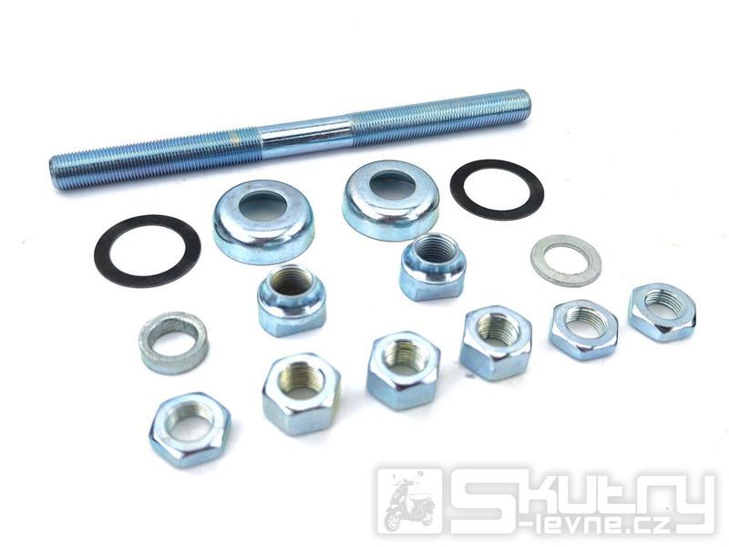 Kompletní sada přední osy určená pro Puch Maxi s drátovými koly. Obsahuje samotnou osu, klasické matice i konusové matice pro správné nastavení ložisek. Díky přesným rozměrům odpovídá originálnímu provedení a umožňuje rychlou a bezproblémovou montáž.