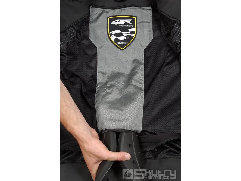 Díky spolupráci s evropskou špičkou v oboru bezpečnostních protektorů, si nyní do všech bund a kombinéz 4SR, od modelového ročníku 2009, můžete zakoupit vkládací páteřový chránič vyrobený z elastického a přitom houževnatého Polyuretanu. Tento materiál má paměťový efekt, díky kterému je protektor velice účinný, pohodlný a dá se libovolně tvarovat.