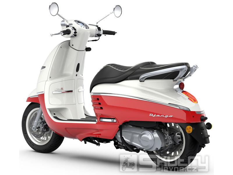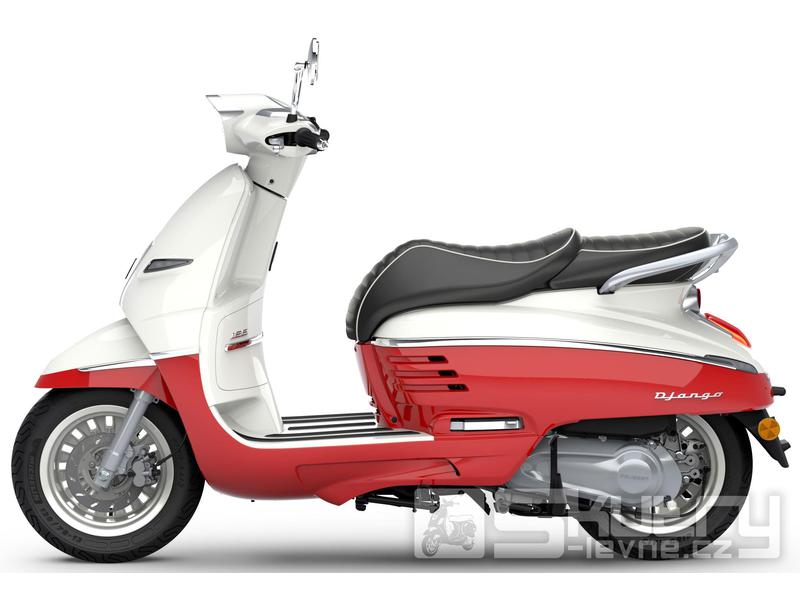 Dvoubarevné lakování dodává Djangu jedinečný retro look, který působí luxusně a nadčasově. Inovovaný přední gril s ostrými liniemi a LED světelným podpisem vychází z aktuální automobilové řady Peugeot, což skútru dodává prémiový vzhled.