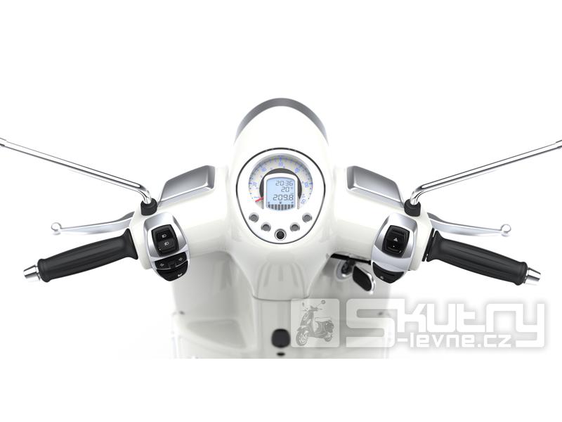 Peugeot Django 125i v dvoubarevném provedení spojuje nostalgický vzhled s nejnovějšími technologiemi. Stylový retro design doplňuje digitální displej, LED osvětlení, ABS brzdy a praktické úložné prostory. Ideální skútr pro každého, kdo chce jezdit s elegancí, pohodlím a špetkou francouzského šarmu.