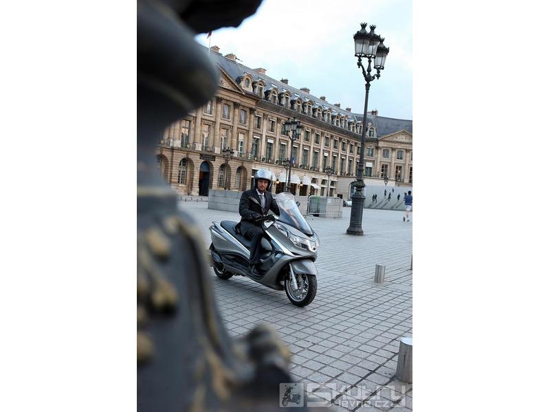 Pro co nejkomfortnější jízdu je skútr vybaven přední vidlicí o zdvihu 125 mm. Vzadu jsou dva hydraulické tlumiče s pružinou nastavitelnou do 4 poloh.