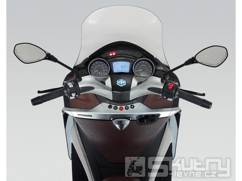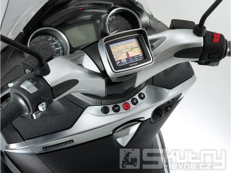 Z bohatého výběru originálního příslušenství s můžete vybrat i multimediální kit, pomocí kterého se přenášejí data do vašeho smartphonu. Tento kit přenáší data o průměrné a aktuální spotřebě a rychlosti, okamžitému výkonu a točivému momentu, o náklonu skútru. Rovněž informuje a varuje při kritickém náklonu a analizuje celkový stav skútru. Na vašem telefonu si můžete zobrazit stav tlaku a opotřebení pneumatik (pouze u verze ABS / ASR). Na aplikaci Piaggio Group si můžete zobrazit mapy, naplánovat trasy nebo vyhledat místa (například čerpací stanice). V případě odcizení skútru si na vašem telefonu můžete najít aktuální pozici skútru.