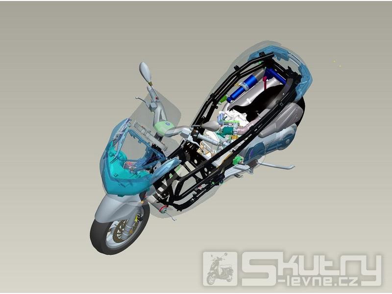 - nejen praktický ale i velký podsedlový úložný prostor nabízí tento skútr, který pojme až 2 skútrové přilby