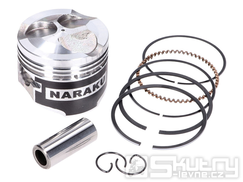Kompletní pístní sada od Naraku pro 4taktní 3ventilové válce Piaggio. Pístní sada obsahuje pístní kroužky, pístní čep a ségrovky pístního čepu. Vhodné pro sportovní válce od Naraku.