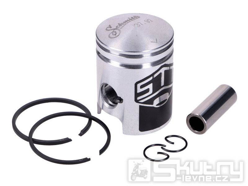 Tato pístní sada je určena speciálně pro Schmitt 50 ccm hliníkový válec s 38mm vrtáním ve verzi pro Mokick (44 mm zdvih). Jedná se o krátký píst, který je nezbytný pro správnou geometrii u Mokick‑verze Schmitt válců pro motory Sachs 504 a 505.