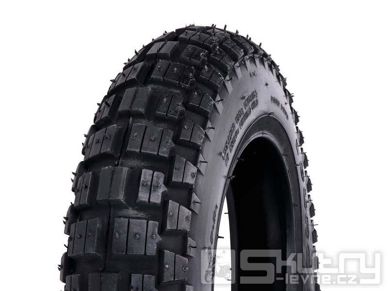 Pneumatiky na skútr Duro v rozměru 3,50-10 s klasickým terénním vzorkem.
