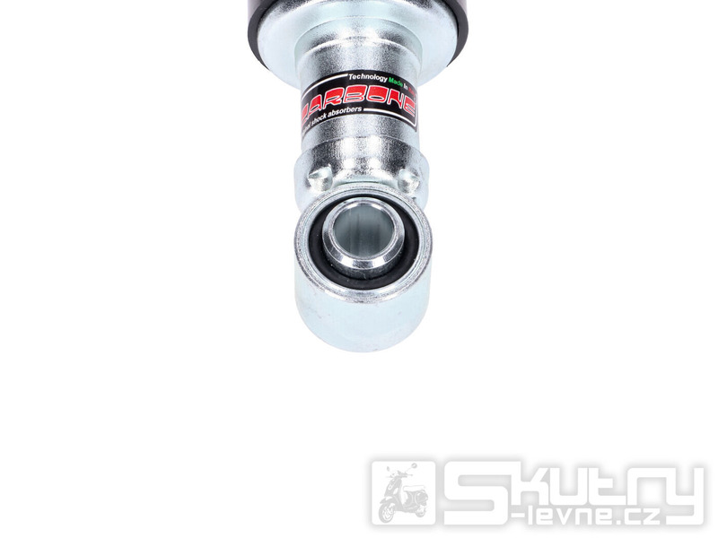 Přední tlumič Carbone je kvalitní řešení pro skútry Vespa ET3 od roku 1980. Tlumiče mají stříbrné tělo, černý kryt pružiny a jsou vybaveny 8 prvky.