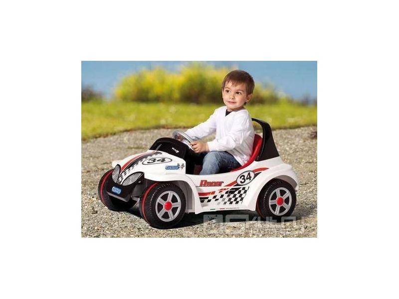 Dostatečný výkon motoru a baterie postačuje na dobu jízdy 70 minut a rychlost 3,8 km/h. Mini Racer zvládne rovný a pevný terén s max. stoupáním 5%. Dětské autíčko má nastavitelné sedadlo. Povrch kol je z měkkého plastu "EVA", Ovládání rychlostí vpřed a vzad a zvuku je umístěno vrdle volantu. Dětská elektrická vozítka Peg-Pérego jsou dodávána včetně nabíječky a baterie.