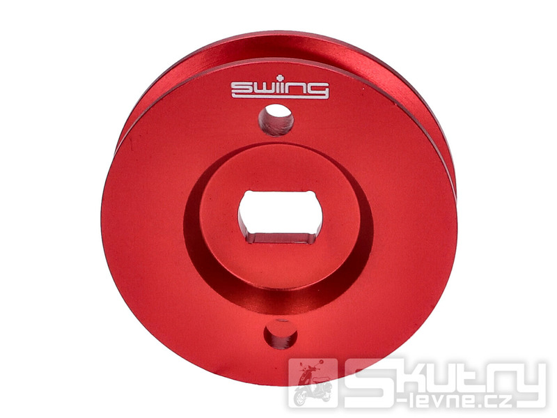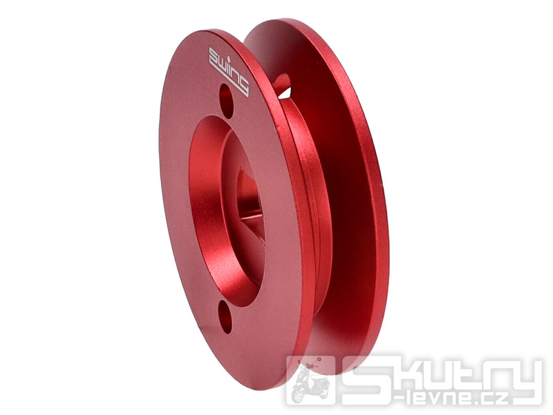CNC obráběná řemenice o průměru 55 mm určená pro mopedy Piaggio s jednorychlostní převodovkou – konkrétně Piaggio Boss, Bravo, Ciao, Grillo a Vespa Si. Vysoce kvalitní swiing Pully je vyrobena z hliníku a červeně eloxována, což zajišťuje vysokou odolnost, atraktivní vzhled a přesný chod bez vibrací.