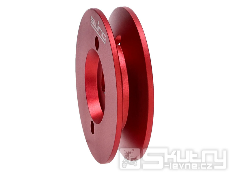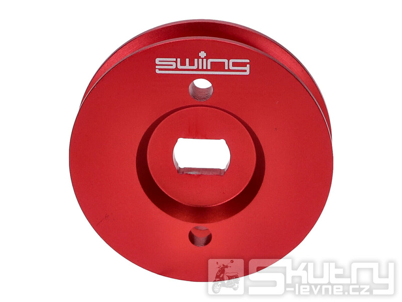 CNC obráběná řemenice o průměru 60 mm určená pro mopedy Piaggio s jednorychlostní převodovkou – konkrétně Piaggio Boss, Bravo, Ciao, Grillo a Vespa Si. Vysoce kvalitní řemenice Swiing Pully je vyrobena z hliníku a červeně eloxována, což zajišťuje vysokou odolnost, atraktivní vzhled a maximálně přesný chod bez vibrací.
