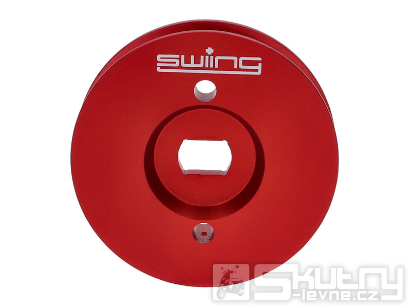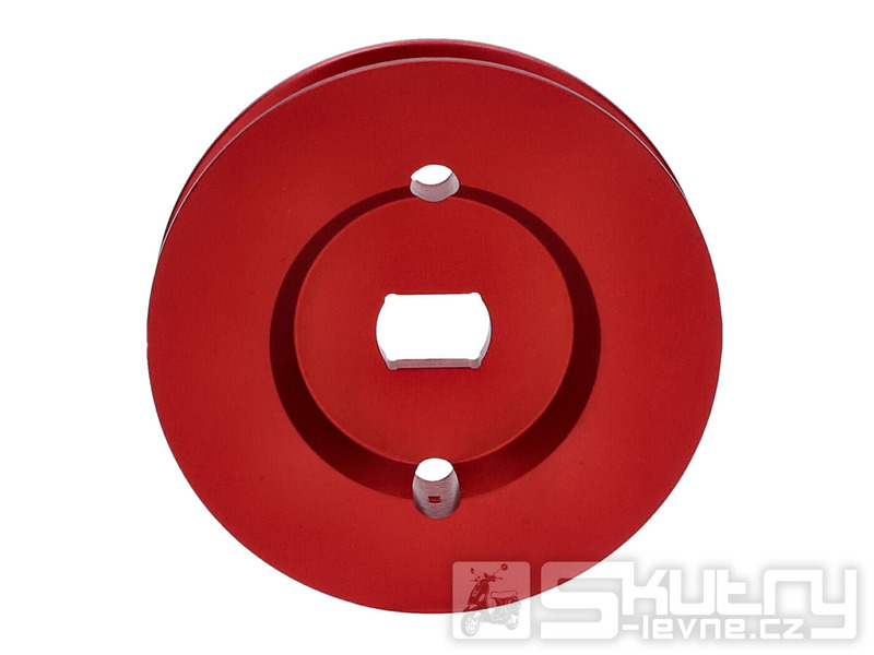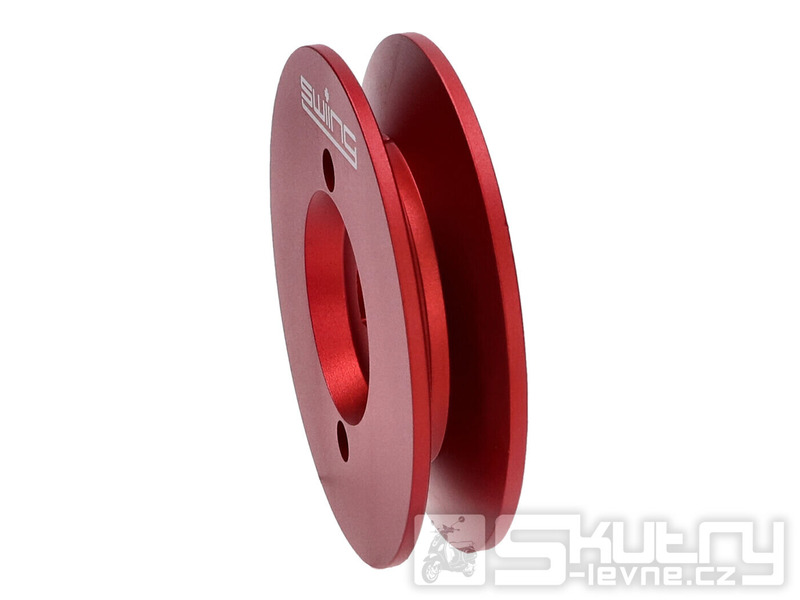 CNC obráběná řemenice o průměru 65 mm určená pro mopedy Piaggio s jednorychlostní převodovkou – konkrétně Piaggio Boss, Bravo, Ciao, Grillo a Vespa Si. Vysoce kvalitní swiing Pully je vyrobena z hliníku a červeně eloxována, což zajišťuje vysokou odolnost, atraktivní vzhled a maximálně přesný chod bez vibrací.
