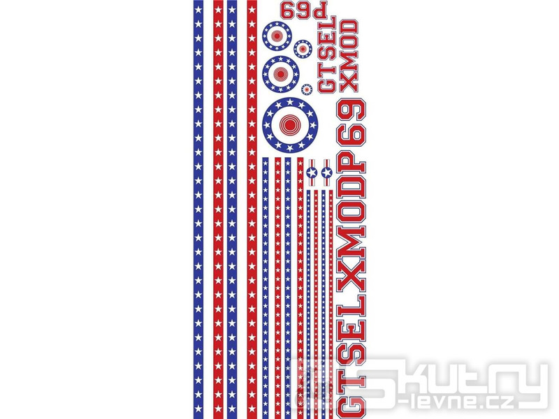 Oživte svůj skútr s tímto 39-dílným dekorativním setem nálepek SIP "Stars & Stripes" o rozměrech 1250.0 mm x 750.0 mm.