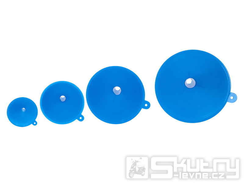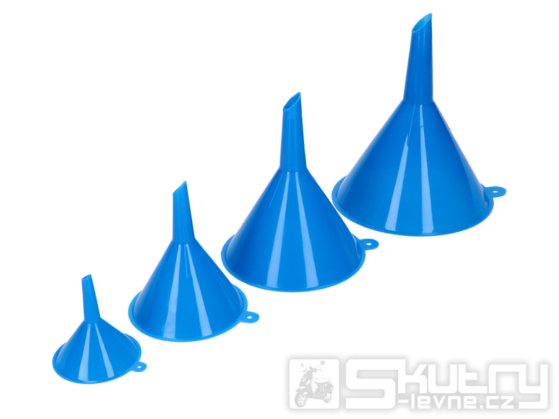 Tato 4dílná sada trychtýřů je vyrobena z oleji a kyselinám odolného plastu, takže je ideální pro práci v dílně, garáži i při běžné údržbě skútru či auta. Každý trychtýř má jiný průměr, takže si vždy vyberete ten správný pro danou náplň nebo otvor.
