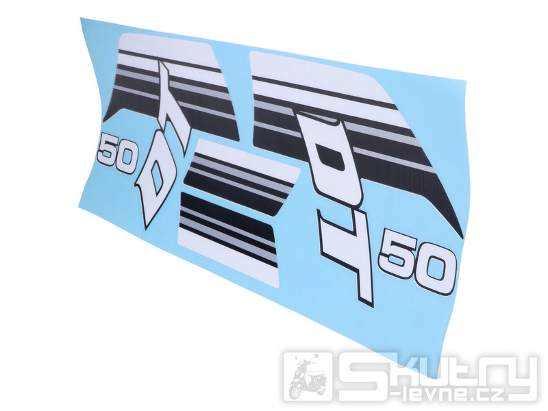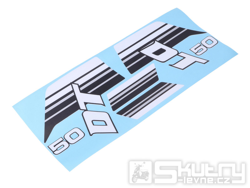 Sada kvalitních samolepek na nádrž určená pro model Yamaha DT 50 z let 1983–1985. Barevná kombinace černá / bílá / šedá perfektně ladí s červenými mopedy a vrací stroji původní, autentický vzhled.