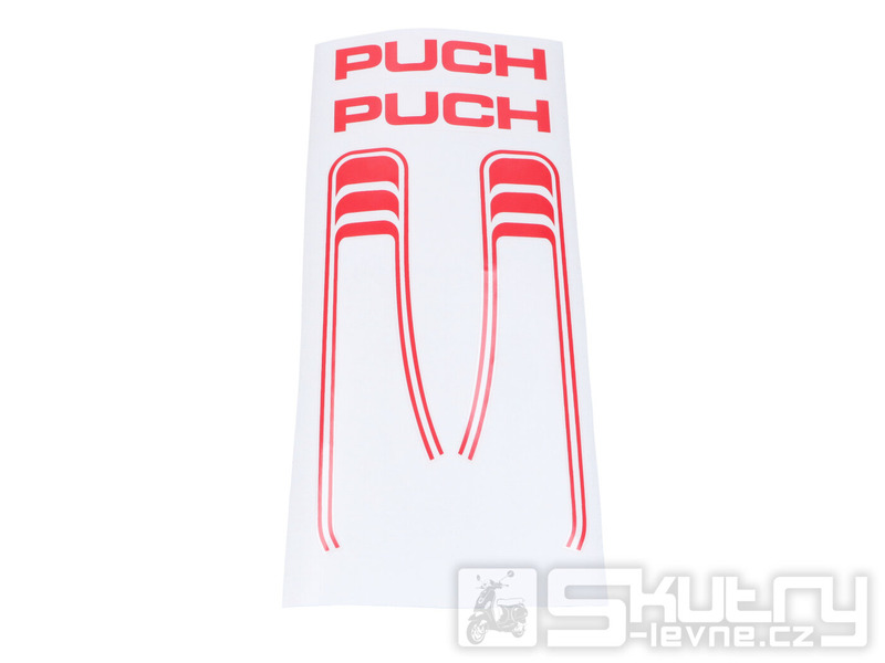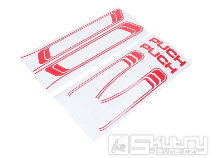 Kvalitní 6dílný set červených transferových samolepek určený pro nádrž a rám mopedů Puch Maxi a Puch Maxi S, N od roku 1983.