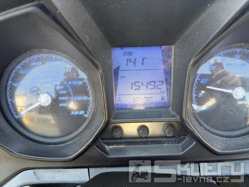 Kompletní velký servis skútru Kymco New Downtown 350 po 15487km. Výměna olejů, nový vzduchový filtr, kompletní čištění variátoru, údržba zadní řemenice, přezutí přední pneumatiky, výměna brzdových destiček a doplnění chybějících dílů. Součástí byla také příprava na STK jako je kontrola osvětlení, tlaku v pneumatikách a celková prohlídka stroje.