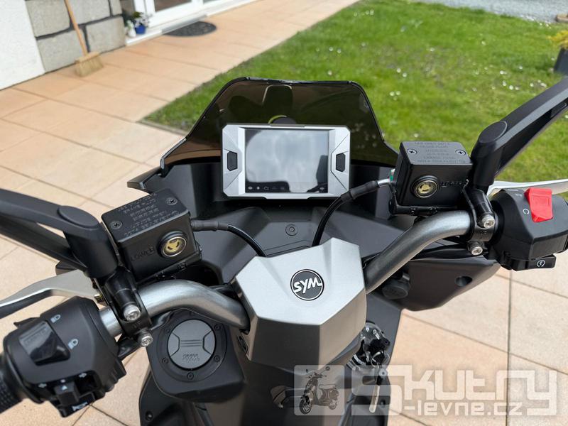 Nový 5palcový barevný LCD přístrojový panel přináší přehledné zobrazení všech klíčových informací, které jezdec potřebuje během jízdy. Zobrazuje údaje běžné u vyšších modelů SYM – otáčky motoru, čas, napětí baterie, teplotu chladicí kapaliny, stav paliva, indikaci bočního stojanu i počítadla kilometrů.