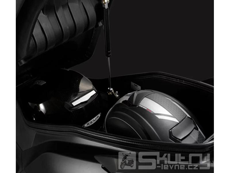 Pod sedadlem najdeš velký úložný prostor, který pohodlně pojme helmu či další vybavení, a nechybí ani nastavitelná výška plexi pro maximální komfort při jízdě.