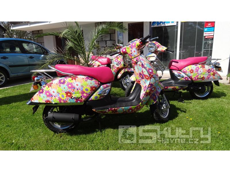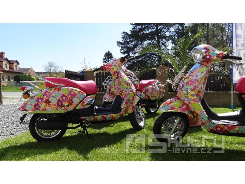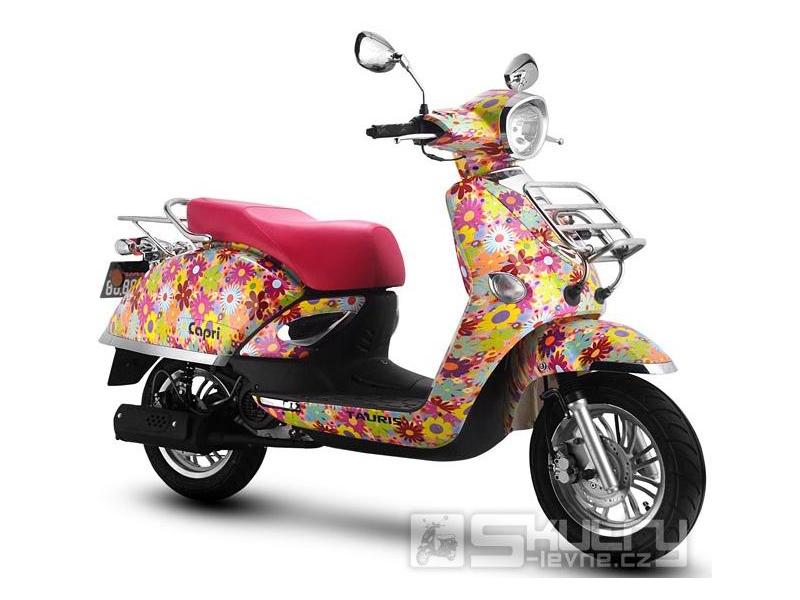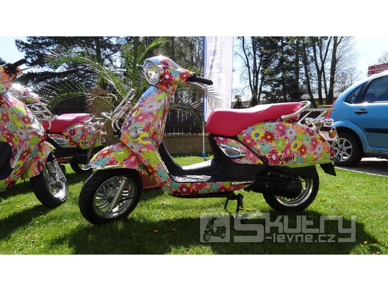 Pohodlný a všestranný skútr. Capri se vyznačuje klasickým, ale přitom moderním designem doplněným o úsporný 2taktní motor s klidným a plynulým chodem. Capri je vhodná především do města, díky menším rozměrům se Vám snadno bude parkovat a proplétat ucpanými uličky měst.