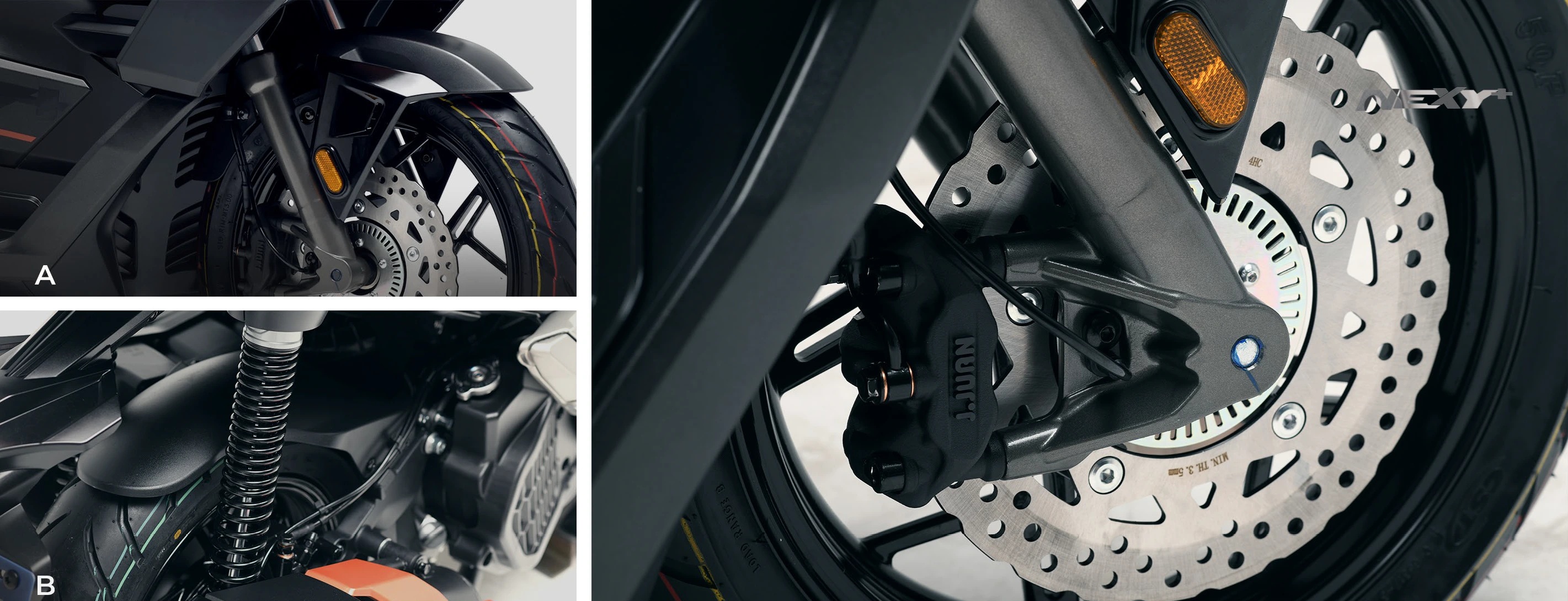 Díky těmto prvkům se skútr výborně ovládá, drží stopu i při vyšších rychlostech a poskytuje maximální jistotu v každé situaci.