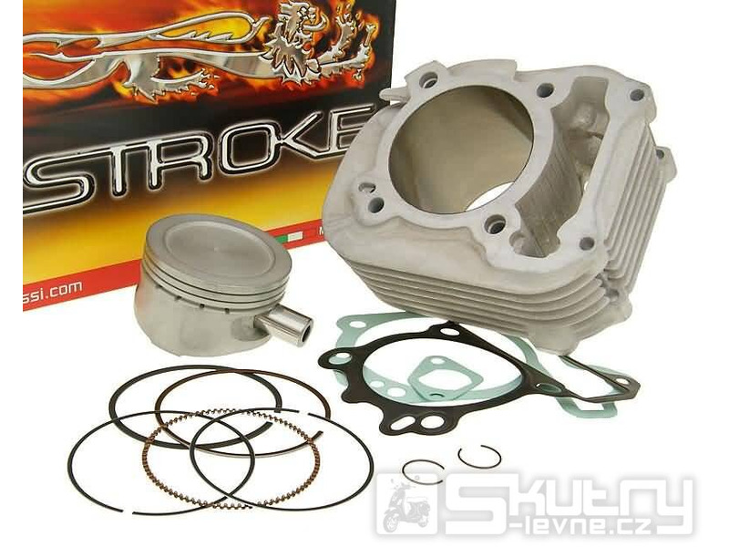 Válec Big Bore o objemu 187 ccm od Malossi pro vzduchem chlazené motory Piaggio Leader 125 a 150 s karburátorem. Válec má s vrtáním 70 mm a zdvihem 48,6 mm skutečný zdvihový objem 187,6 ccm (komprese 11,5:1) a zajišťuje tak vynikající nárůst točivého momentu a výrazně lepší zrychlení. Špičkově zpracovaný válec, píst a pístní kroužky spojují dlouholeté zkušenosti Malossi s vyváženým, solidním výkonem motoru, který jistě potěší každého milovníka čtyřtaktů. Vhodný pro každodenní provoz. Jízda na čtyřtaktu je nyní zábavná i se spolujezdcem, a to při téměř stejné hlučnosti.