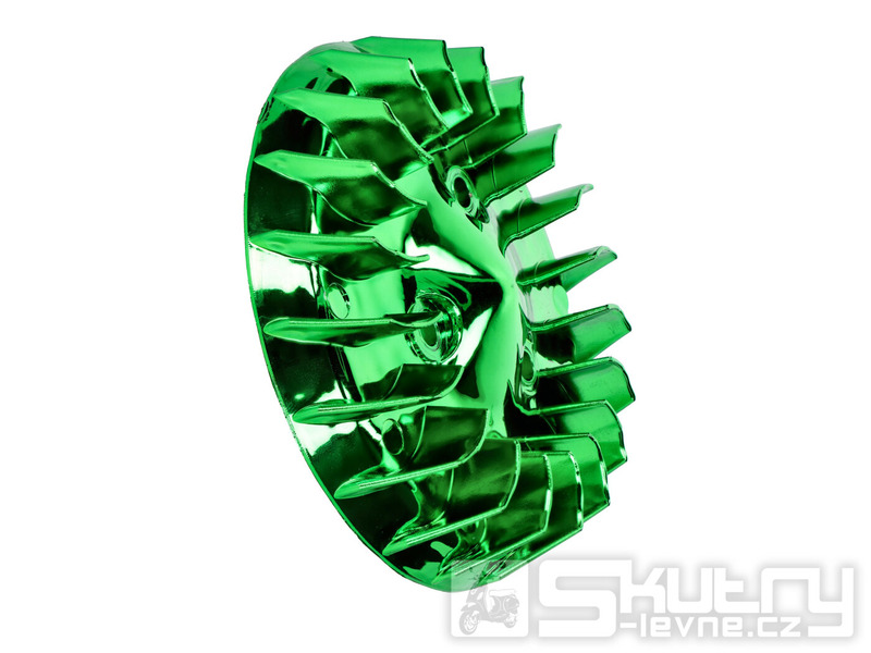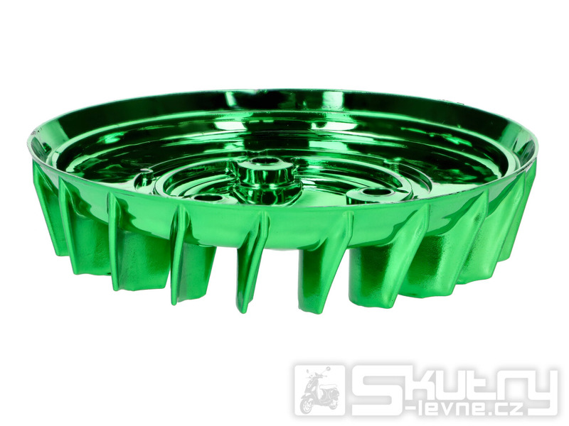 Ventilátor zajišťuje stálý proud vzduchu kolem válce, čímž chrání motor před přehříváním při městském provozu i delších jízdách. Díky kvalitní konstrukci a optimalizovanému tvaru lopatek přispívá k efektivnímu chlazení a stabilnímu výkonu motoru. Lesklá zelená povrchová úprava dodá tvému skútru jedinečný vzhled a okamžitě upoutá pozornost.