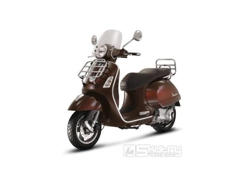 Skútr GTS 300 ve speciální edici Touring je obohacen o výbavu ideální na delší cestování. Ale přitom si zachovává svoji jedinečnou eleganci. Přední a zadní chromovaný nosič na zavazadla, čelní štítek pro ochranu před nepříznivým počasím a boční stojánek pro snadnější parkování.